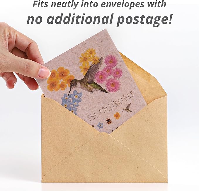 - Whimsical Floral & Hummingbird Art: Delight in the charming design of our Pollinator Mix packet featuring whimsical floral and hummingbird art. A perfect favor for eco-conscious hosts. Works great as a giveaway or party favor.