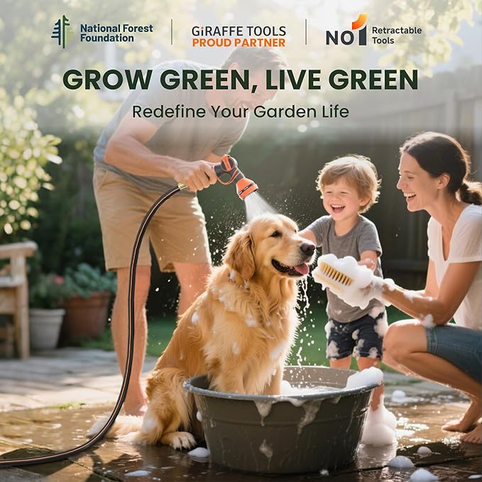 - Durable and Any Length Lock: Giraffe hose reel is pre-installed with a 78 ft hybrid hose, which can lock at any length as you desired, covers every corner of your garden.