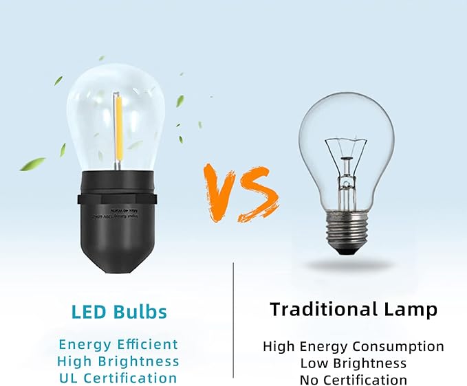 - ใHeavy-duty Wireใ The connecting wire of the light bulb is thickened and has obtained ETL certification from the United States.The insulation material can protect the strand from hot winter, sun, wind, rain, snow and damp. Flexible heavy-duty cord withstands the wear of indoor and outdoor use.