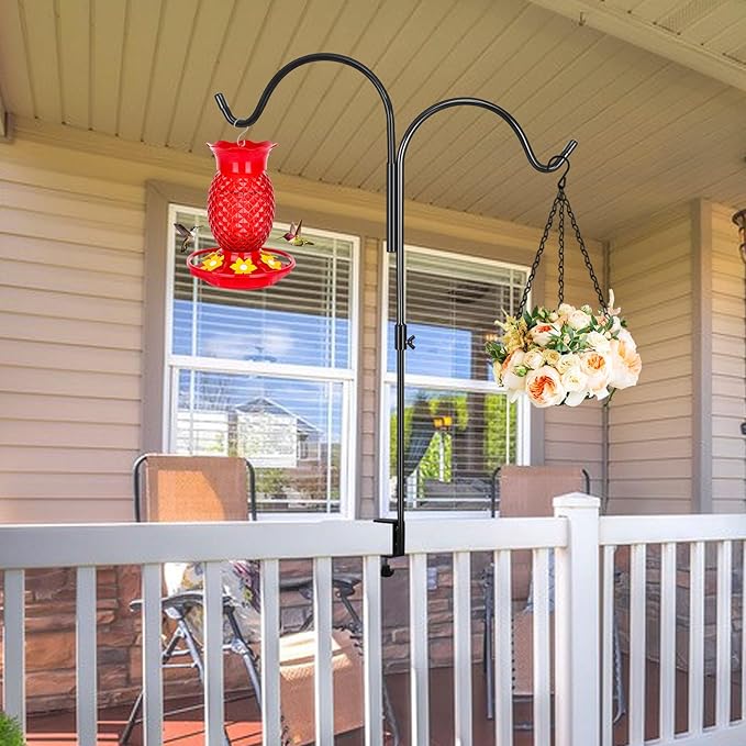Gtongoko 35 Inch 2 Pack Double Deck Hook for Railing, Deck Bird Feeder Pole with 3 Inch Strengthened Clamp for Hanging Bird Feeders, Lanterns, Wind Chimes, Flower and Plant Baskets