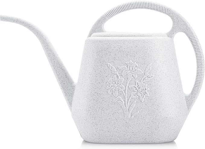 Fasmov 1-Gallon Plastic Watering Can with Comfortable Handle, Garden Watering Cans Long Spout for Indoor Outdoor Watering Plants (Gray White)