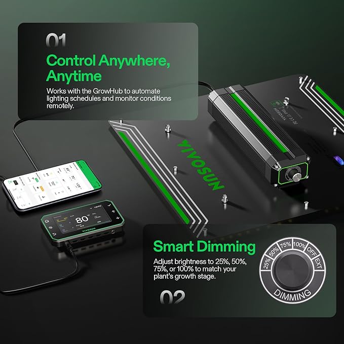 - Safe to Use: The IP65 rating surface can meet your demand in different indoor planting environments; Comes with a pair of Vivosun US-patented rope hangers & 5-year after-sales warranty service