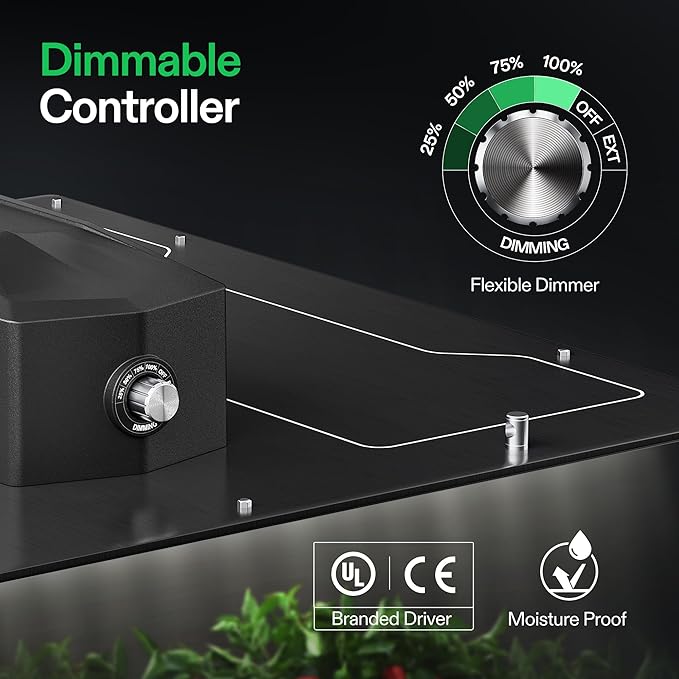 - Dimmable Ballast: This LED plant lamp has a dimming knob with 4 levels that can be used from sprouting to flowering; Designed with the daisy chain function (EXT) that allows you to connect multiple lights with 1 socket