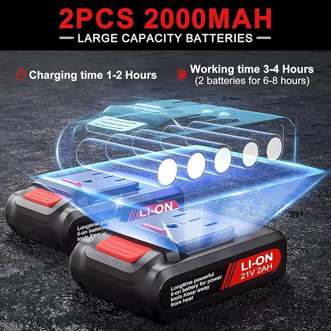 - 【Long-Lasting Battery & Rapid Charging】 Equipped with dual 21V 2000mAh lithium batteries, these battery pruners eliminate power anxiety. A single charge delivers 3-4 hours of continuous use—perfect for large orchards or farms. The smart fast-charging system fully replenishes batteries in 90 minutes, ensuring your electric pruners are always ready for action