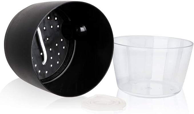 - Thanks to the double-layer design that allows excess water to be stored in the bottom of this planter pot and provided to your plant with wick rope.