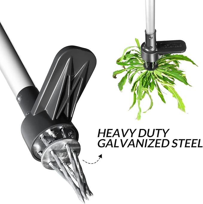 - Upgraded Weeder with Durable Material: Walensee upgraded weed removing tool's pole is made from high quality iron which is strong & durable, that can withstand your weight when you step on the foot pedal. It is also zinc plated to make it rust-resistant. The updated weeder not only have a beautiful looking, but it will be used longer, more convenient, and less labor. This is a durable garden weed puller, so you don't have to buy another weeder.
