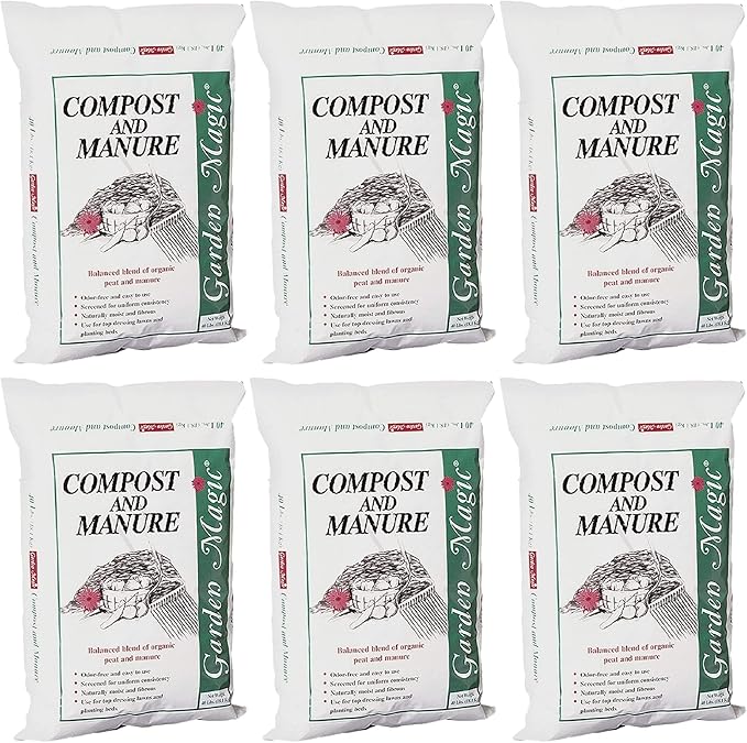 Michigan Peat 6-Pack Compost and Manure Blend, Garden Magic Mix w/Odor-Free Blend, 40 Lbs - Outdoor Lawn and Gardening Mixture with Nutrients and Minerals for Soil Potting and Planting