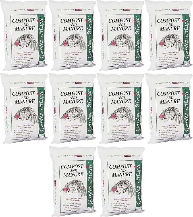 Michigan Peat 10-Pack Compost & Manure Blend, Garden Magic Mix w/Odor-Free Blend, 40 Lbs - Outdoor Lawn and Gardening Mixture with Nutrients and Minerals for Soil Potting and Planting