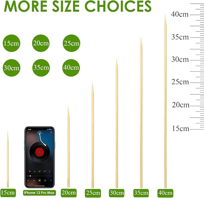 - Multi Occasions Use - Wooden sticks are an indispensable choice for barbecue party, camping trips, holiday events, wedding. And these wood skewers are pefect tool for meat, poultry, seafood, veggies, cheese, cake decoration, cupcake toppers,fondue and even plant supports!