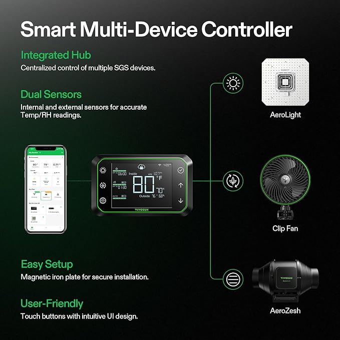 - Smart Control and Programming: The AeroLight is compatible with the Vivosun GrowHub Controller and App; You can also automate and customize day/night schedules to simulate natural environments; This package does not include this controller, which needs to be purchased separately, ASIN: B0BCFV11WG
