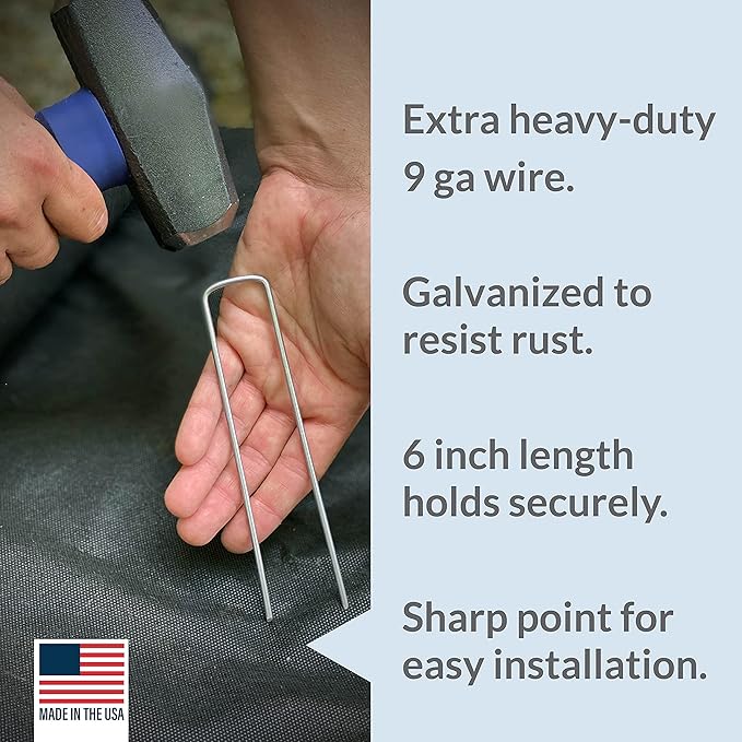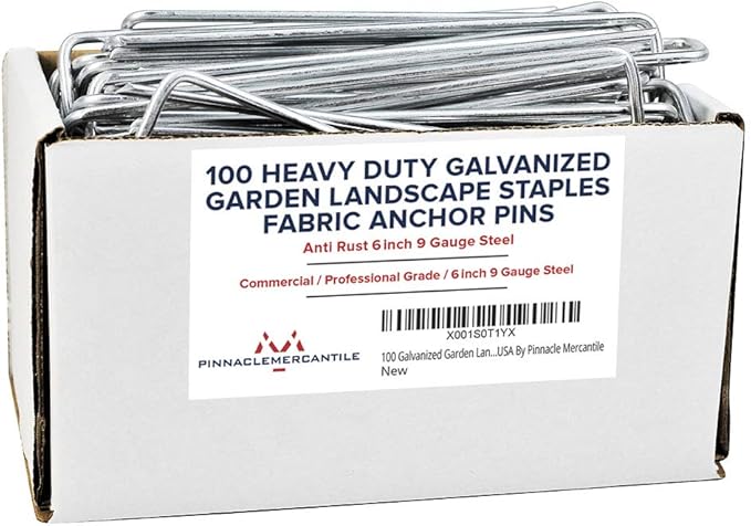 Pinnacle Mercantile 100 Pack Galvanized Garden Stakes Landscape Staples Extra Heavy Duty Sod Ground Anchors Anti Rust 6 inch Metal Pins 9 Gauge USA Made …