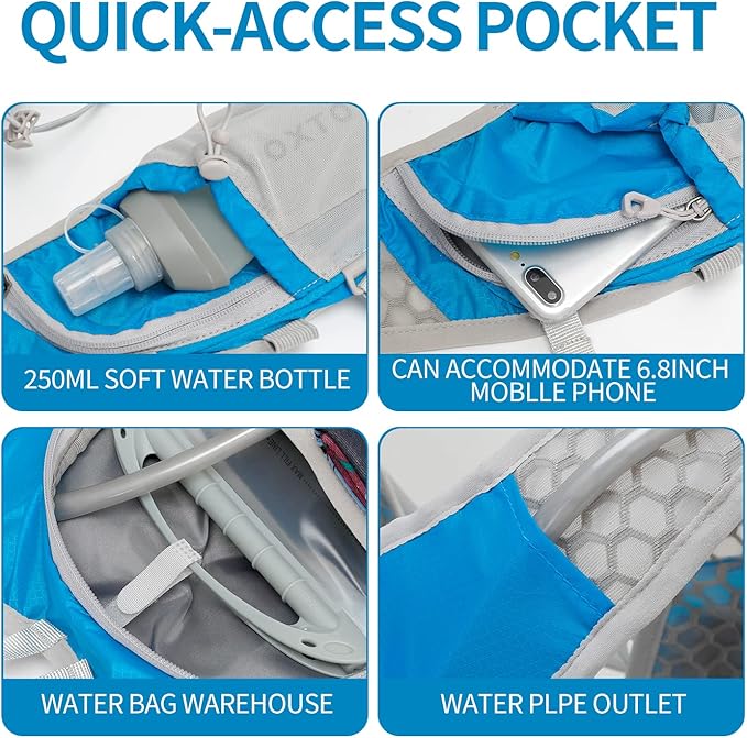 - đ´âăSecurity and Multiple Storage PocketăWater backpack for hiking Reflective trim for night safety, has multiple pockets can store various necessities outdoor. The bottom front pocket allows you to quickly find what you need during hiking. Smaller quick access items without removing the pack, such as keys, wallet, gadget, sunscreen, phone, towel, or any other items. To travel light, efficient access, let you run faster and farther.