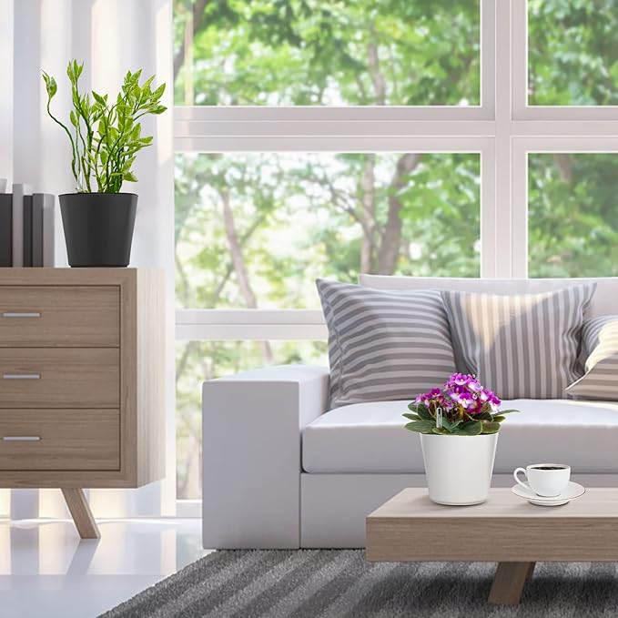 - GS Garden African violet pots function efficiently, taking care of your plants even when you can't. Self watering pots can help you keep your plants happy and thriving, even with your busy schedule. As a users, we are well aware of the joy and beauty that plants bring to the family. Self watering plant pot are specially designed planters for home gardening and modern decor. Suitable for all outdoor plants, herbs in kitchen, bedroom, study room, office, windowsill, balcony, garden, etc.