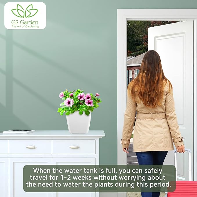 - GS Garden self-watering planters is an ideal plant pot for for All Outdoor/Indoor plants. The special water inlet design can avoid soil collapse and lead to excessive hardening of the flower soil. The root system can fully grow in the soft soil.Ideal for residential and commercial grades