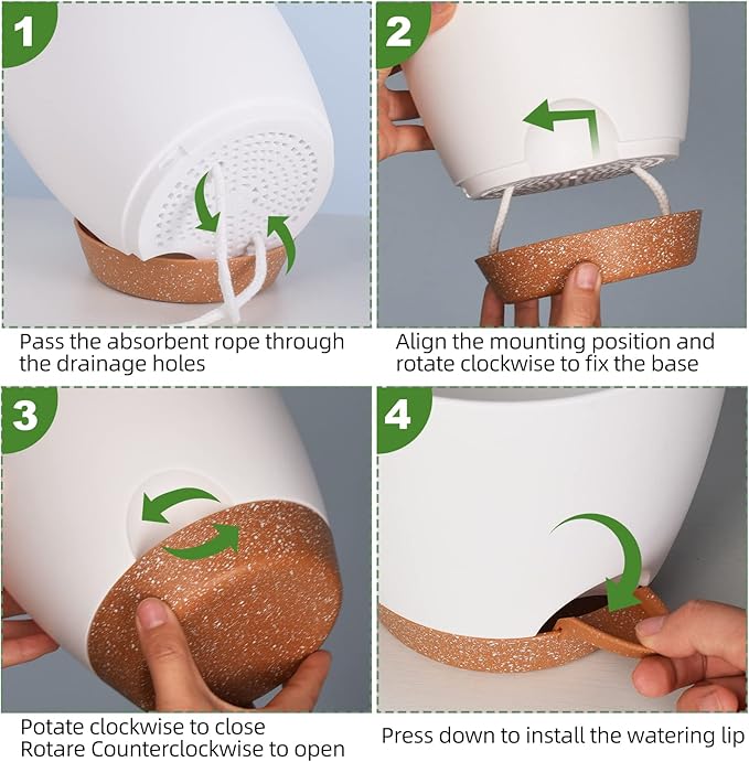 - [Self Watering Planters]: Vanslogreen plant pots for indoor plants are designed with a saucer that acts as a reservoir to store a large amount of water, separats the reservoir from the potting soil. When your plant needs water, the water is diverted from the reservoir to the soil through absorbent cotton ropes. Your plants only need to be watered once a fortnight.