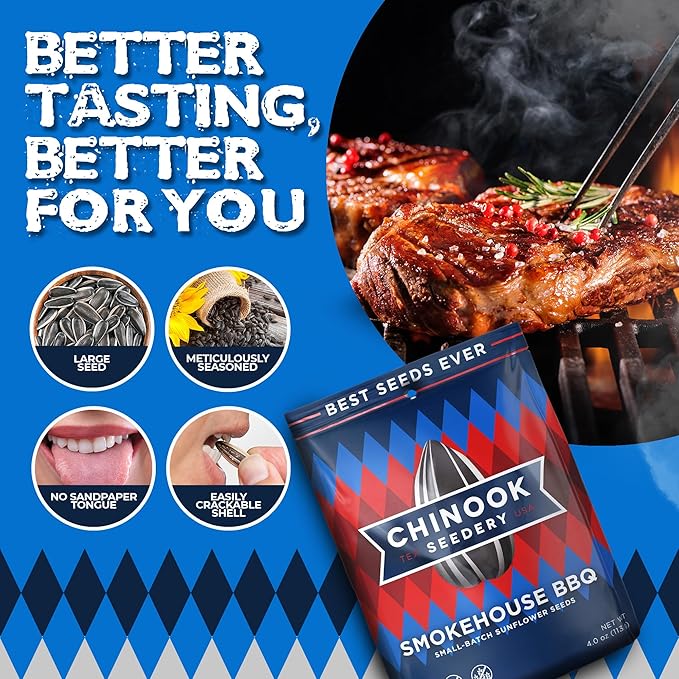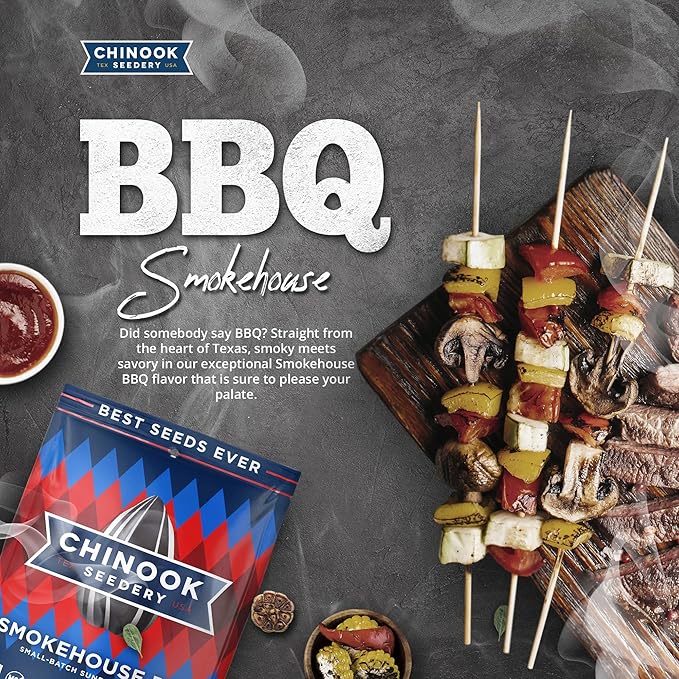 Chinook Seedery Roasted Sunflower Seeds - Jumbo Seeds Keto Snacks - Best For Snack Packs - Gluten Free, Non GMO Snack Food Gifts - 4 Ounce (Pack of 3) - Smokehouse BBQ Flavor Pack