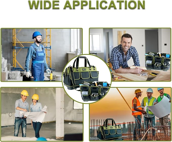20inch Tool Bag for Men Women Heavy Duty with Waterproof Molded Base Large Tool Bag, Wide Mouth Tool Tote, Artisan Carpenter Electricians Tool Bags,Adjustable Shoulder Strap Organizer