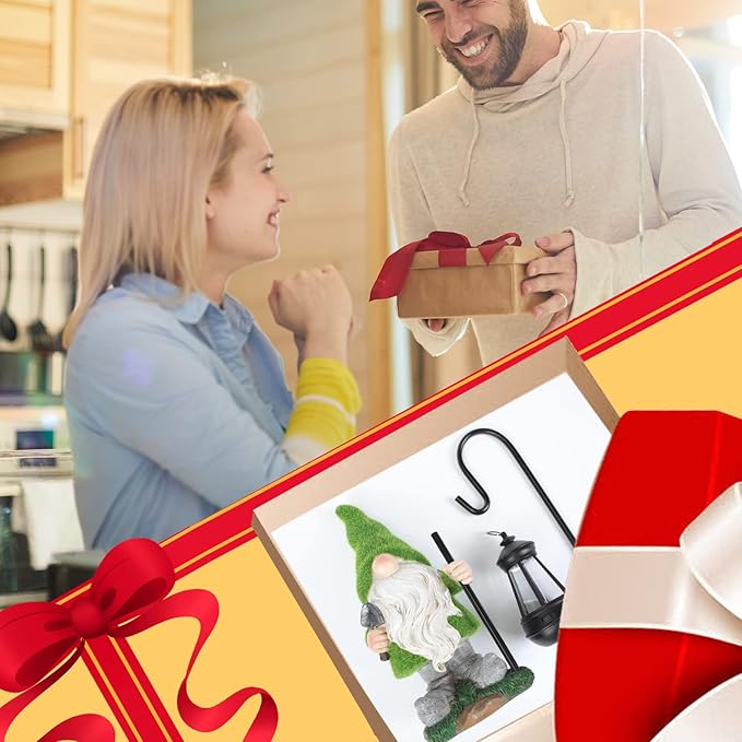 - Flocked Garden Gnome Statue with Solar LED Light, Large Funny Fairy Gnomes Figurines with Solar Lantern, Outdoor Fall Decorations for Yard Lawn, Tall 15.8 Inch