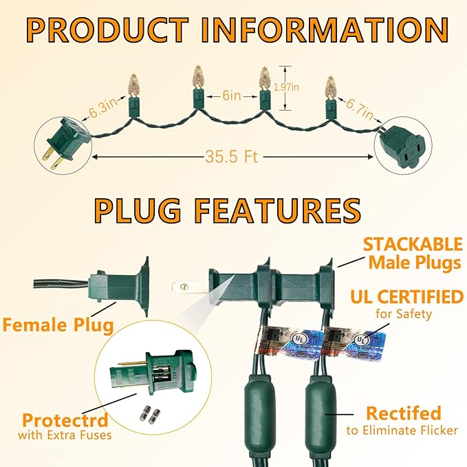 - UL Commercial Grade Christmas Lights Outdoor: UL listed; approved for indoor outdoor, commercial grade 22AVG wire with high tensile strength for outdoor display