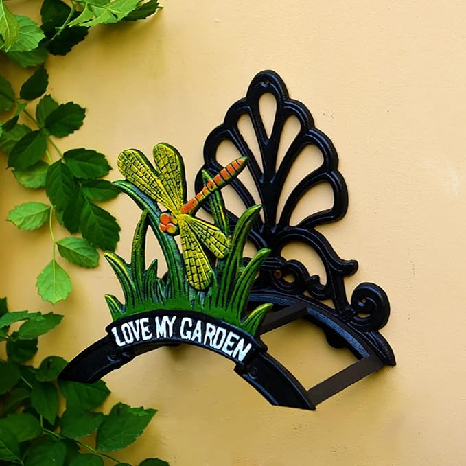 - [Top-quality material]: Made of high-quality heavy-duty solid cast iron, with a clear texture and a hand-painted anti-rust coating, this well-made hose holder is long-lastingfor years of use. It helps keep your yard cleaner and neater