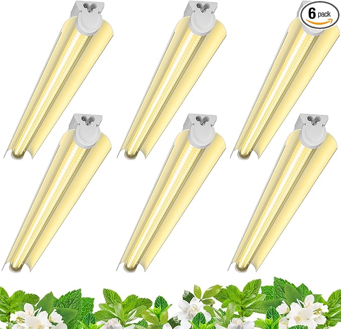 Barrina 3FT T8 Grow Light, 180W(6 x 30W), 1000W Equivalent, Full Spectrum, Plant Light, Growing Lamp Fixture, LED Grow Light Strips, for Indoor Plant, Greenhouse, Linkable Design, Yellow, 6-Pack