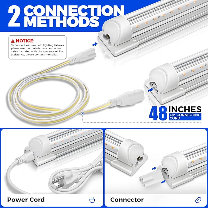 - V-shaped Reflector & High Efficiency: The light efficiency can be increased by 17~20% with reflector, providing you with the best light intensity. The shell of our t8 led grow light was made of 100% aluminum which provides the high-efficiency heat dissipation. Ensuring the longer service life of the led chips