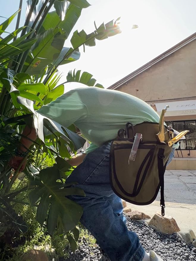 - Adjustable Waistbelt:The gardening belt is suitable for waists up to 48".Durable buckle and sturdy waistband fit comfortably around your body.Size:11.8in x 13in(D x H)