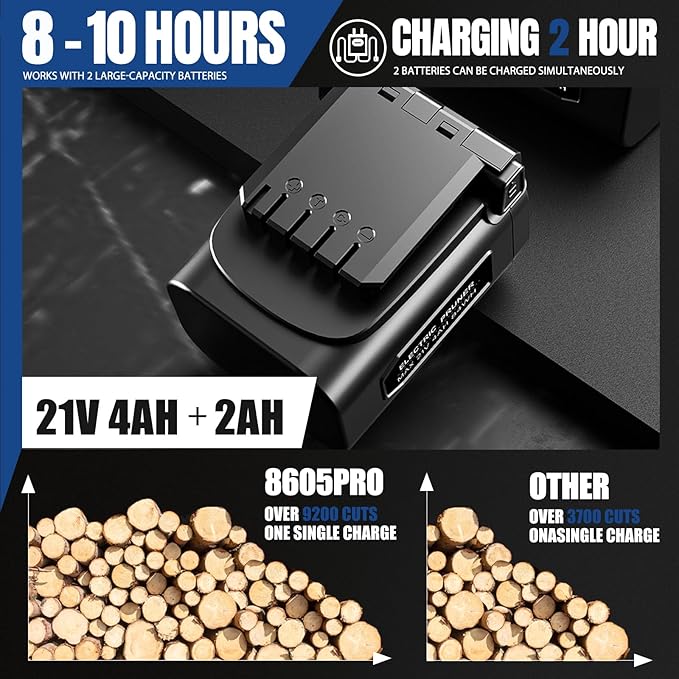 - 【1050W Brushless Motor + SK5 Steel Blades】Powered by industrial-grade brushless motor technology and ultra-sharp SK5 carbon steel blades, cleanly slice through dense hardwood branches (up to 1.6" thick) with hot-knife precision—no splintering or repeated sawing.