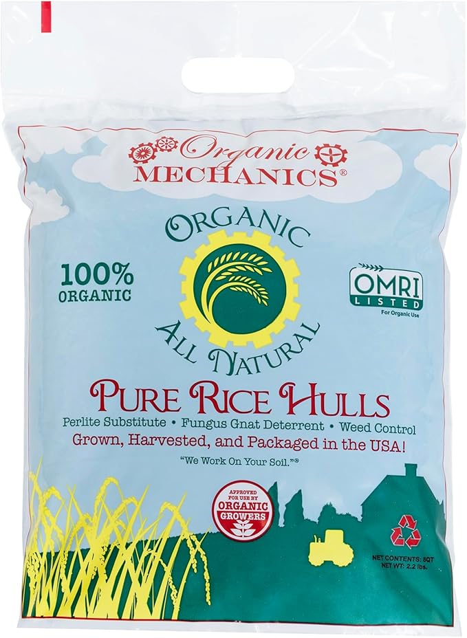 Organic Mechanics Pure Rice Hulls, 8 qt - Sustainable Alternative to Perlite - Enhances Drainage, Porosity and Air Space - Eco-Friendly