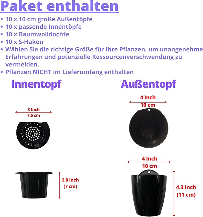 - 10 pack set: 4 inch (outer pot); 3 inch (inner pot), mini size, fit 3” nursery pot. Check image for detailed dimension and pick the right size for your plants to prevent unpleasant experience and potential wastage on resources