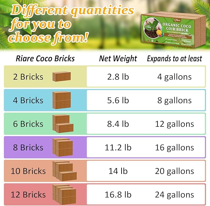 - Premium Material: Environmental option and gorgeous texture! pure natural compressed coco peat brick with low EC; balanced pH; high expansion, and excellent breathability. The coconut fiber substrate absorbs and retains moisture really well, perfect for soil that needs drainage. Makes a lot of soil with a little brick, best garden soil substitute