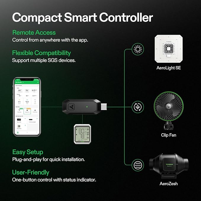 - The GrowHub E25: Connect with the Vivosun Smart Grow System, allowing you to monitor and control the AeroLight by the Vivosun App; connect a wide range of equipment and design Grow Recipes that will take your plant from seed to harvest automatically