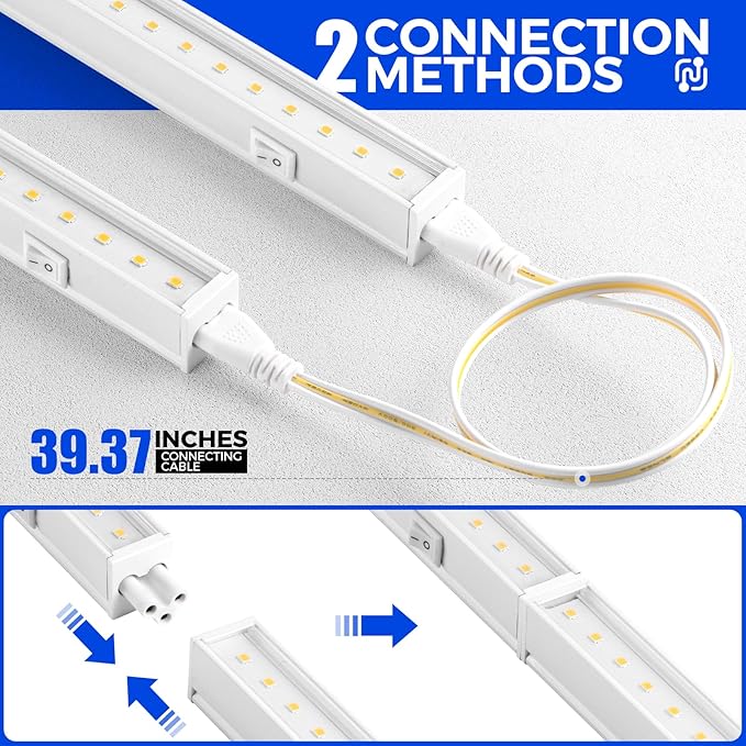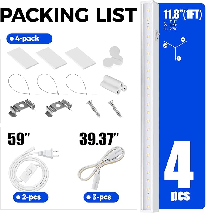 - What You Get: 4 x Barrina T5 Grow Lights, 2 x Power Cords with ON/OFF Switch, 3 x Connecting Cords(39.37''), 4 x Small Connectors, 8 x Installation Clips, 12 x Double-sided Tapes, 12 x Cable Ties