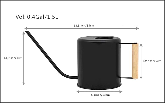 - Holds 0.4 gallons of watering and includes side wood handle for comfortable and accurate pouring