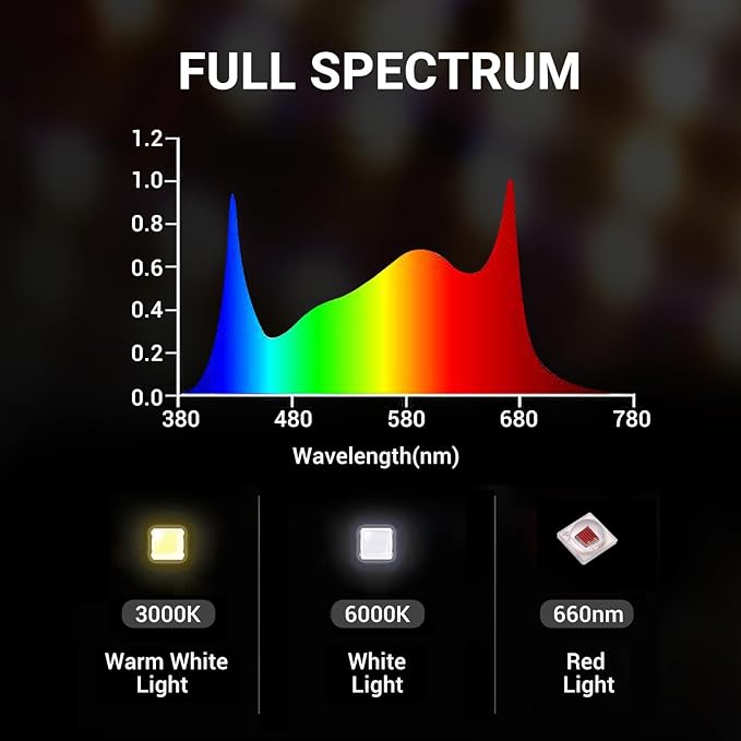 - Full Spectrum Commercial LED Grow Light: The spectrum ratio is adjustable to provide more matching spectrum for plants, full spectrum lighting of natural light, dimming function enable vegetables and flowers and fruits to provide appropriate light for plants at different growth stages, from seedling to flower, greatly Increase your harvest