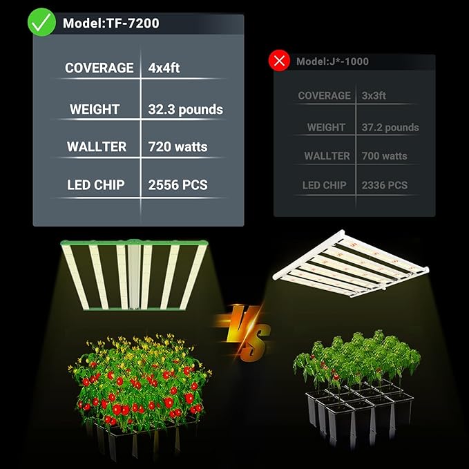 - Cost-Effective LED Grow Light: Different from traditional HPS, our 720W LED light adopts high-tech Samsung LED and sealing technology, using Moso 800W power supply, the power consumption is only 720W compared to traditional 3000W HPS/MH! Brighter and longer life