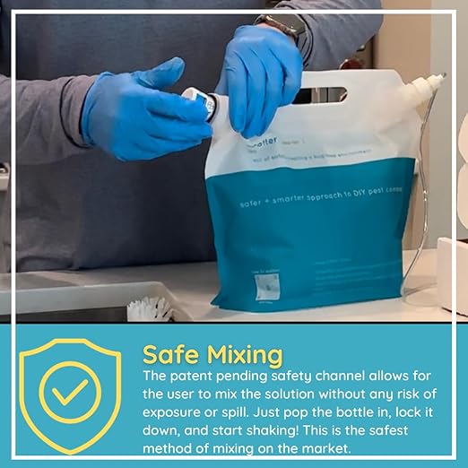- SafetyChannel FOR MIXING - Our patented SafetyChannel makes mixing concentrated pesticide a breeze. Just pop and lock in the bottle, and then shake. This removes any risk of exposure or spilling of the pro-grade concentrate.