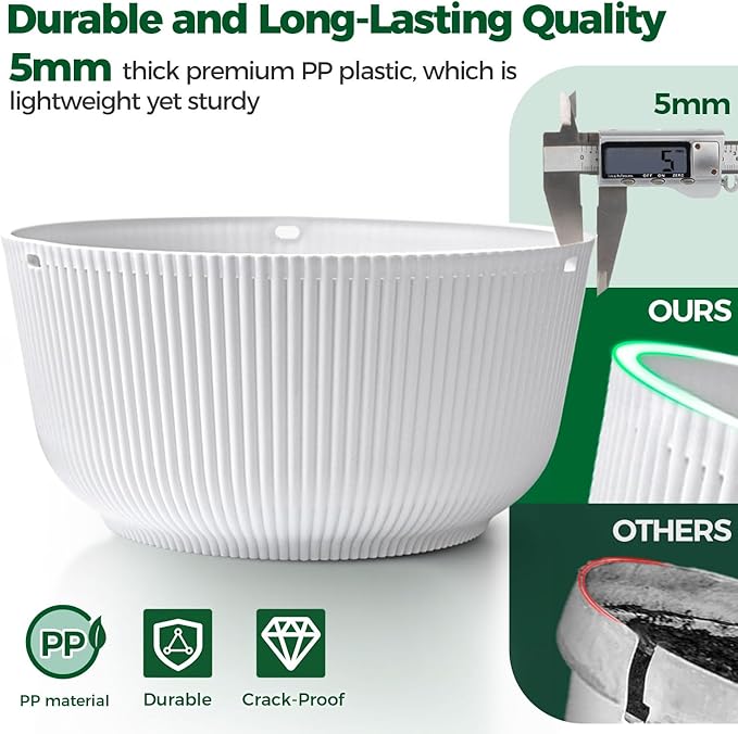 - Minimalist Design: T4U Hanging Planter are well made with modern and sturdy looking. The white plastic appearance is both simple and elegant and would go with any plants like your spider plant, vine plants, ivy, ferns, succulent, flowers or other plants