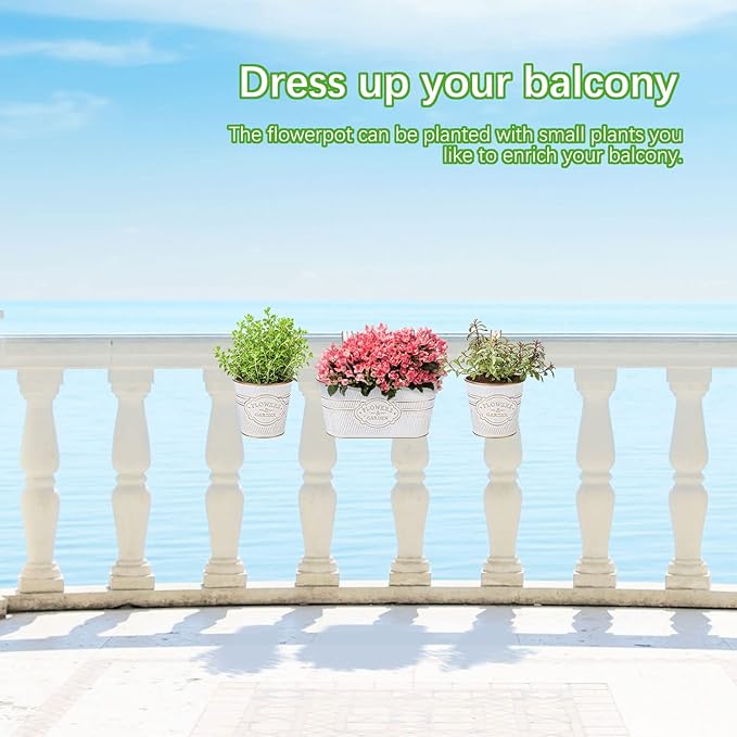 - 【BALCONY RAIL PLANTER】Rectangular Planter was designed to maximize inside growing space allowing dirt and roots to grow strong and deep.This special design can be hung on the balcony, window, garden,railing, anywhere in the room,also can be used as desktop.