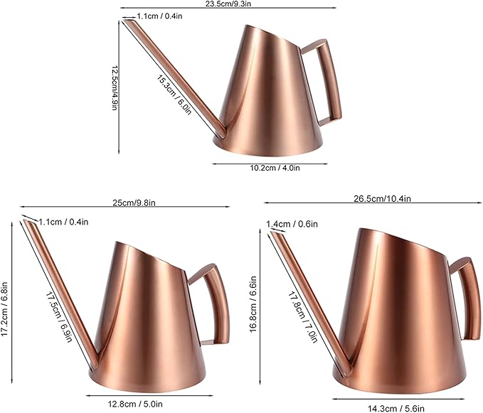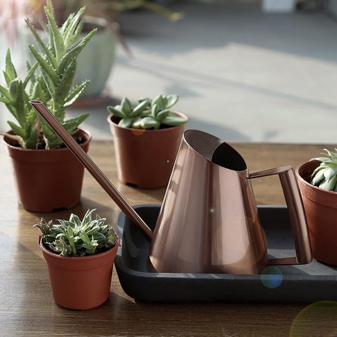 - 【Product material】Long spout watering cans made of high-quality stainless steel, bronze appearance, anti-corrosion and rust, with side handles, ergonomic, comfortable grip, easy to grip