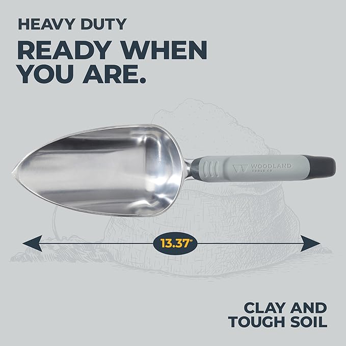 Woodland Tools Heavy Duty Garden Trowel – Full Tang Aluminum Construction, Extra Wide Scoop, Sharpened Point, Ergonomic Cushioned Grip, Rust Resistant Hand Tool for Digging in Clay and Tough Soil