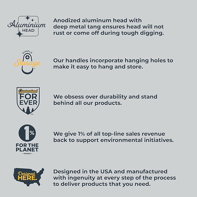 - DESIGNED FOR HARD SOIL AND CLAY Solid aluminum body with full tang design adds strength and durability for digging in tough or compacted soil.
