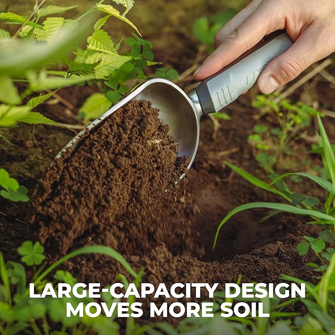 - EXTRA WIDE SCOOP FOR BIGGER JOBS Large-capacity design moves more soil with each pass to speed up digging and planting.