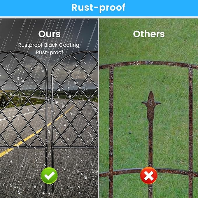 - Reuse: The Fence Can be Made Into Various Shapes Depending on The Use You Need. This Outdoor Decorative Fence Can be Folded, Stored and Moved. You Can Easily Take Them Down, Rearrange Them, and Reinstall Them Anywhere You Like, such as Using Them as Outdoor Pet Fences, Garden Edging Borders, Temporary Fences, Metal Fence Panels, or Portable Fences