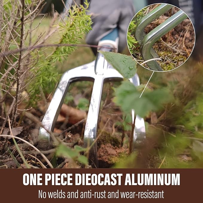 - ONE PIECE DIE-CAST ALUMINUM= LIGHTER,STRONGER: Our in-house foundry uses marine-grade aluminum alloy to create gardening tools that are anti-rust and wear-resistant of the absolute highest quality. These tools support you in fixing or overcoming any problems your garden faces,So go ahead, channel your inner green thumb and let our tools help you create the garden of your dreams!