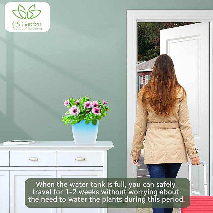 - Convenience: GS Garden self watering pots are incredibly convenient as they require minimal effort to maintain. You can set up a self-watering planter and then just forget about it until your plants need to be watered again. This is perfect for busy people who want to enjoy the beauty of a garden but don’t have the time to constantly water it.