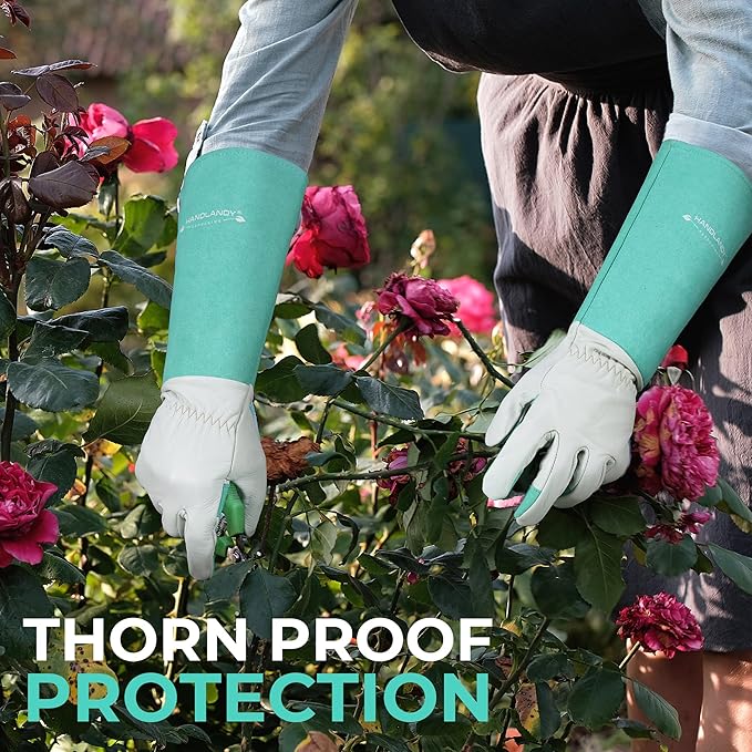 HANDLANDY Long Gardening Gloves for Men Women, Thorn Proof Rose Pruning Leather Garden Yard Gauntlet Glove, Gardening Gifts
