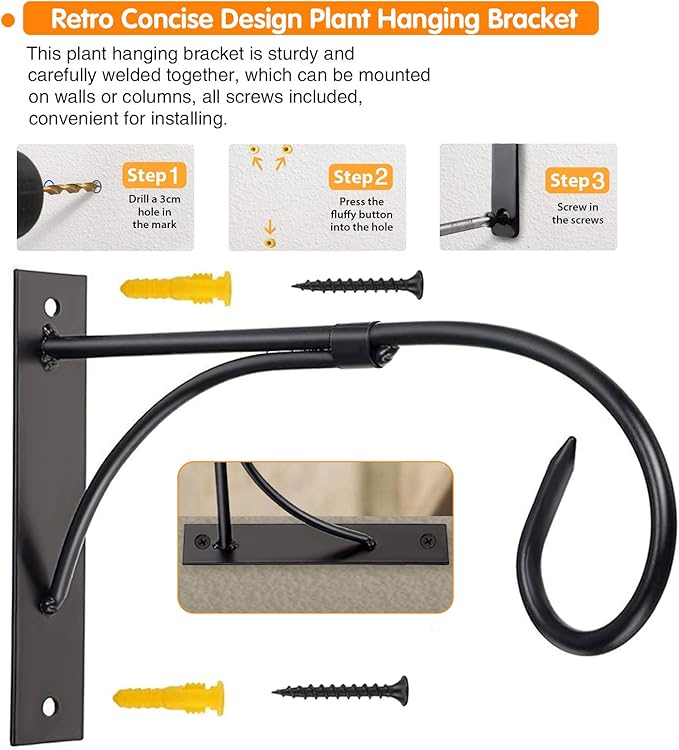 - 🌿EASY INSTALLATION: The nail holes at both ends of the plant hanger Bracket are easy to install. Equipped with screws for mounting and fixing, very stable and firm. Hang anything as you wish. You will be amazed by the robustness and carrying capacity of this plant hanging hooks.