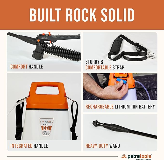 - EFFORTLESS BATTERY OPERATED SPRAYER – Say goodbye to manual pump chemical sprayers! The EZ1 lithium-ion battery sprayer delivers consistent pressure at the push of a button, eliminating hand fatigue and making lawn care, pest control, weed sprayer, and plant watering faster and easier.