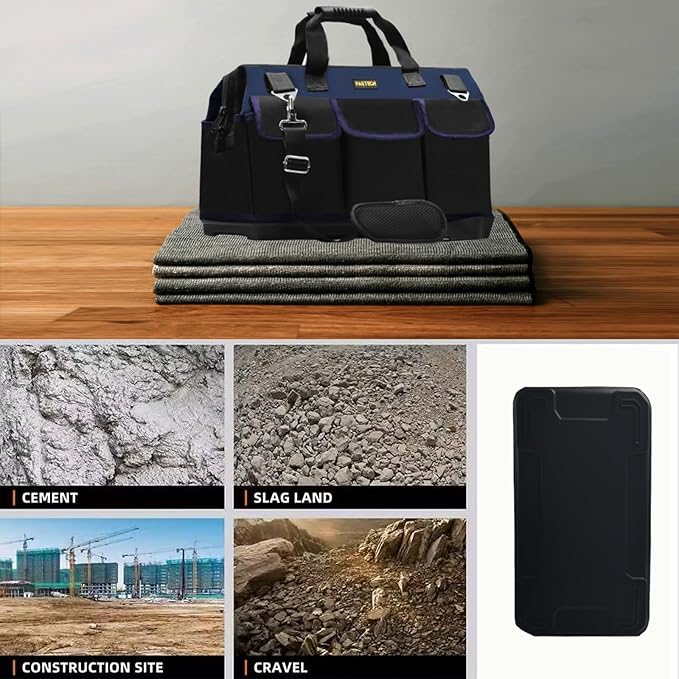 FASTECH 22in Heavy Duty Bottom Tools Bag With Wide Mouth For Tool Storage, Carrier and Organizer, Tote Bag for Men/Women, Wide Mouth Tool Bags With Inside Pockets (22 Inch)